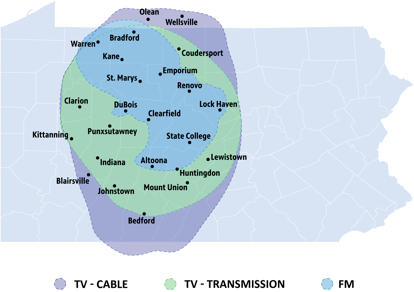 WPSU serves one of the largest geographic coverage areas in the nation. We reach 515,000 households in 24 counties of central Pennsylvania.