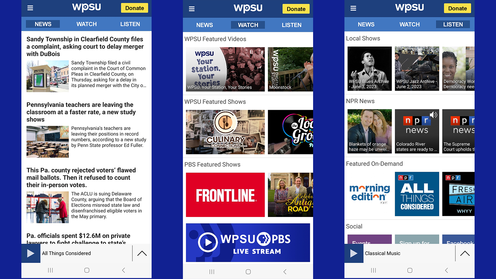 - Easy access to WPSU’s local news and national stories from NPR.